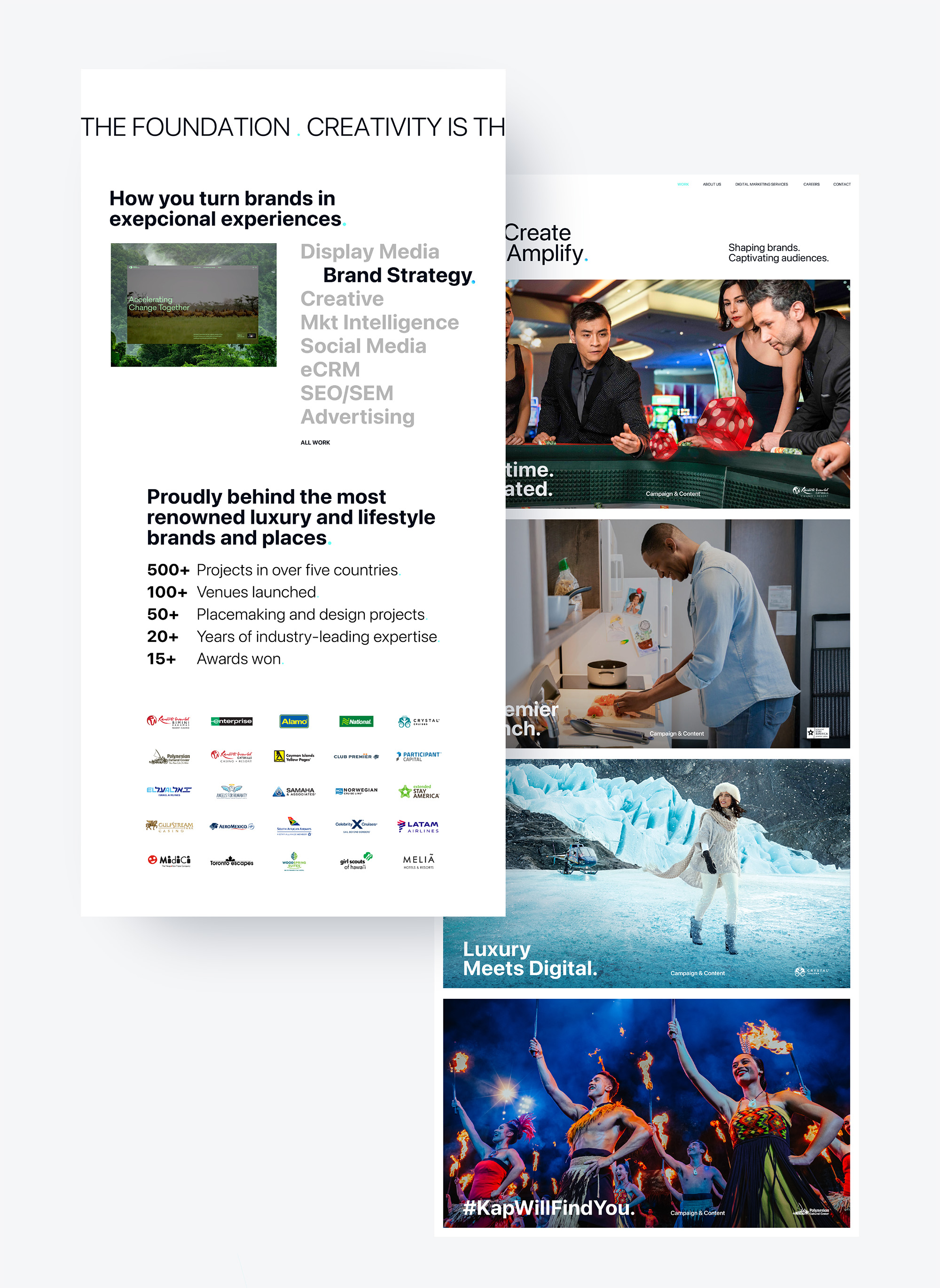 This redesign was driven by the need for greater clarity, stronger visual hierarchy, and a more refined design system that could better support the agency’s growing scope of work. Layouts were simplified, typography was modernized, and spacing, rhythm, and structure were carefully refined to create a more cohesive and intentional experience across the site.